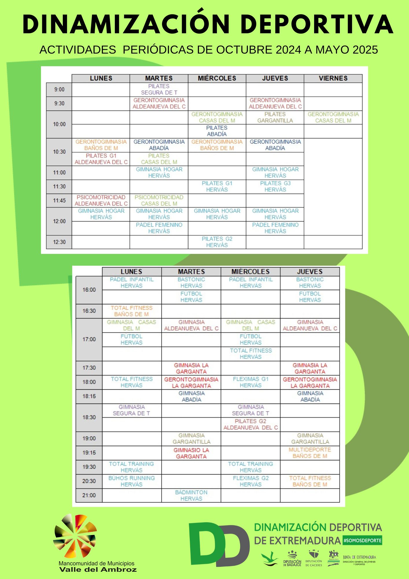 Para más información se puede contactar a través del tlf 927 48 12 71 o del correo dindeportiva@mancomunidadvalledleambroz.es